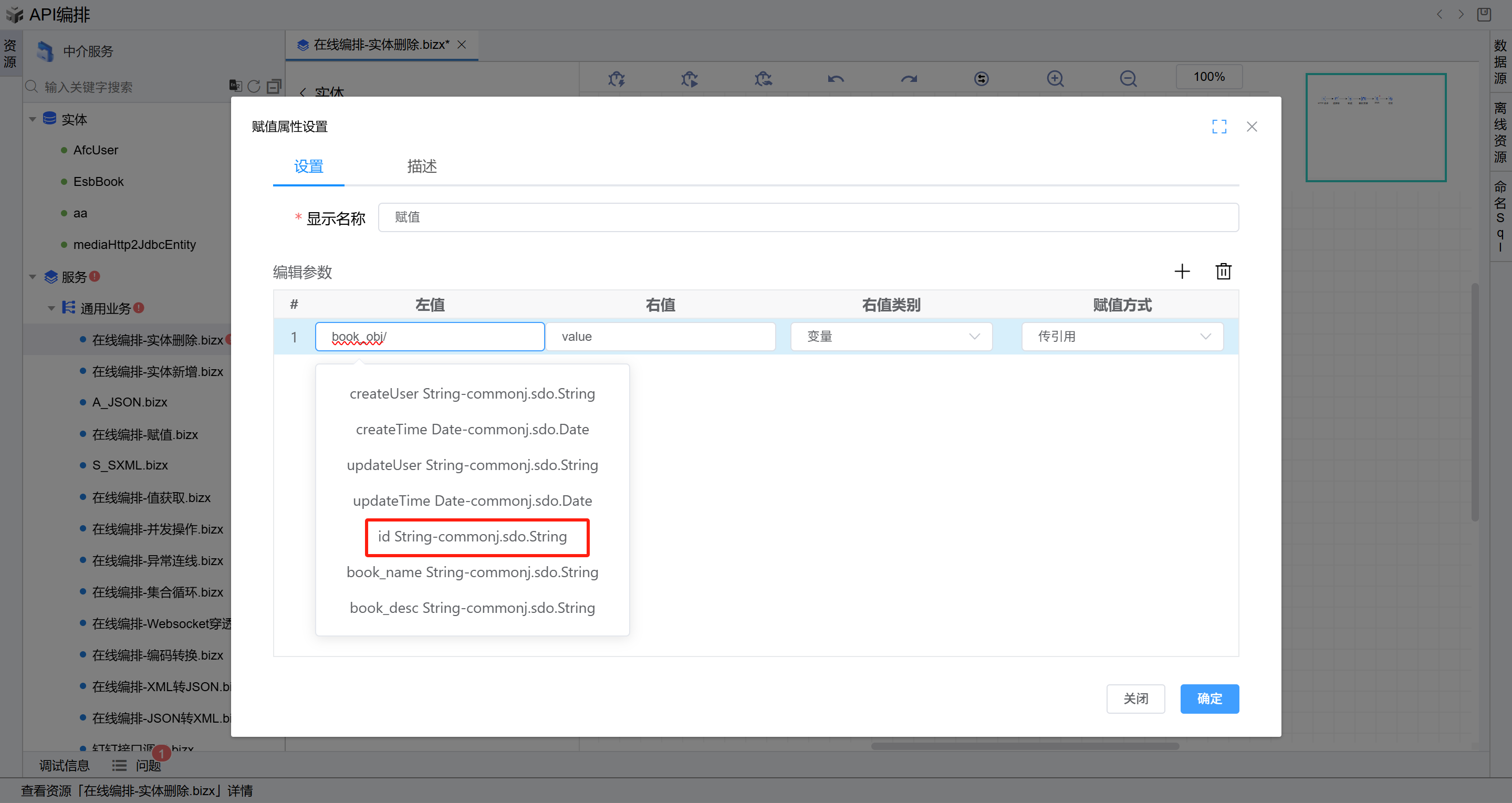 3. 赋值取图元将 id 赋值给 book_obj/id,完成实体赋值
