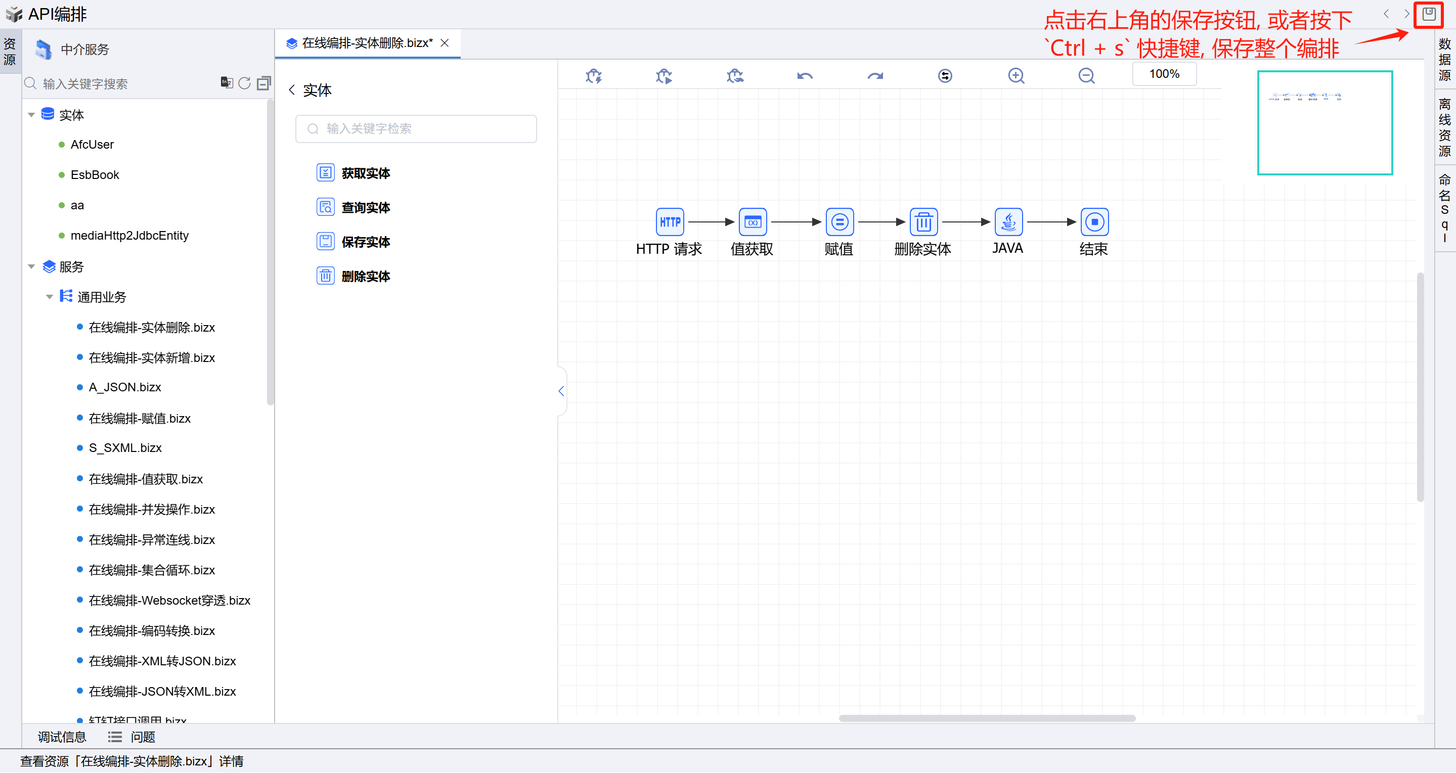 - 1.1. 或者点击中介服务,点击API编排按钮进入在线编排页面。如下图: