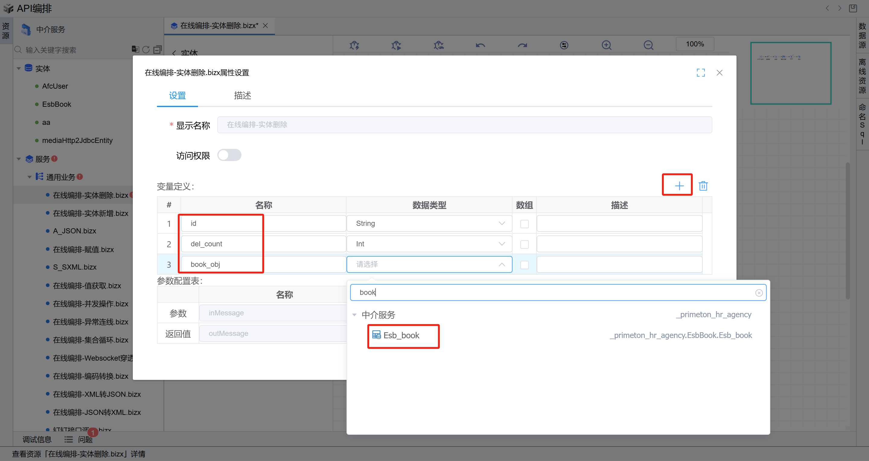 (用于接收删除实体的数量)、前置条件中新增的实体的名称类型的book_obj