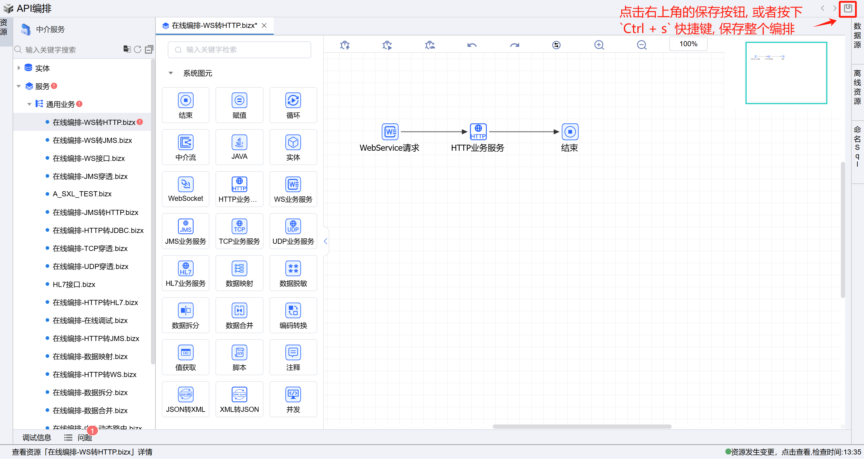 1.1 或者点击中介服务,点击右侧的API编排按钮进入在线编排页面。如下图: