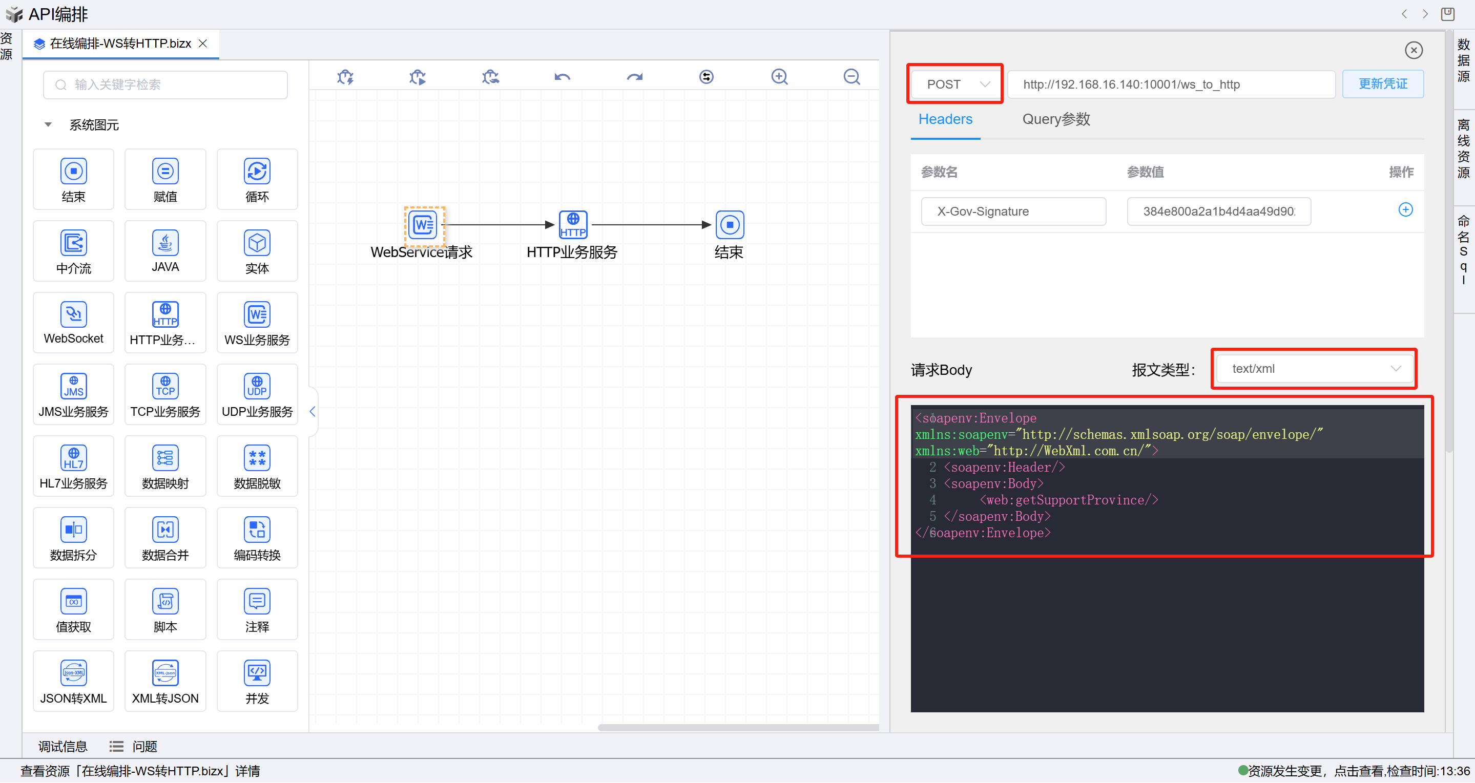 打开测试界面,填写请求内容body体填写如下xml内容:
