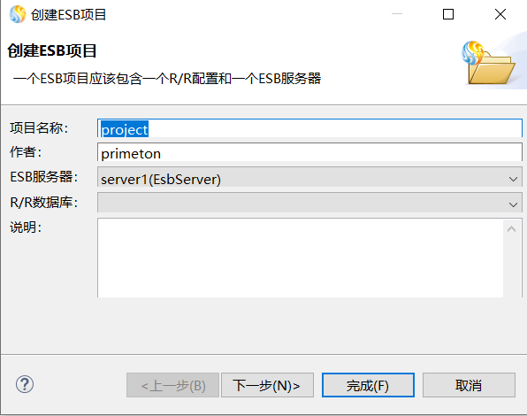 R/R数据库:用于存储Module的R/R。该R/R的配置必须与选择的ESB Server的R/R配置一致。缺省配置下,ESB Server和R/R均连接Studio安装时配置的数据库。