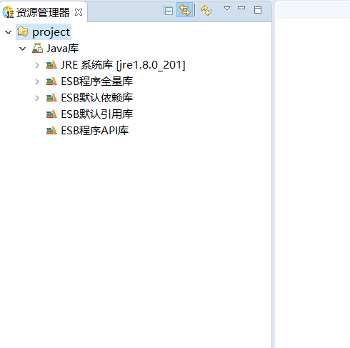 点击"完成"按钮,完成创建ESB项目。创建ESB项目后,资源管理器如下所示: