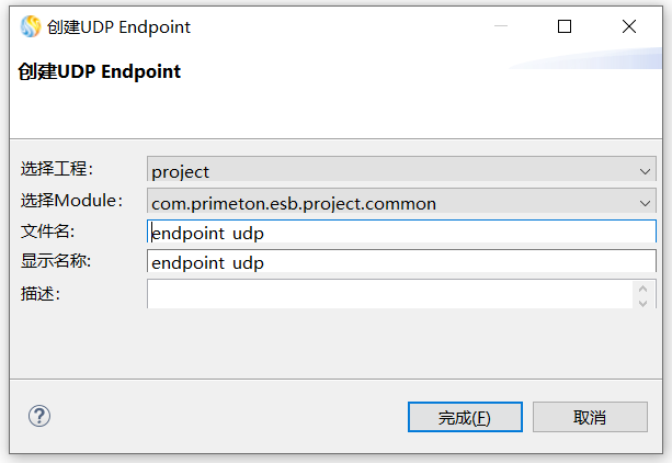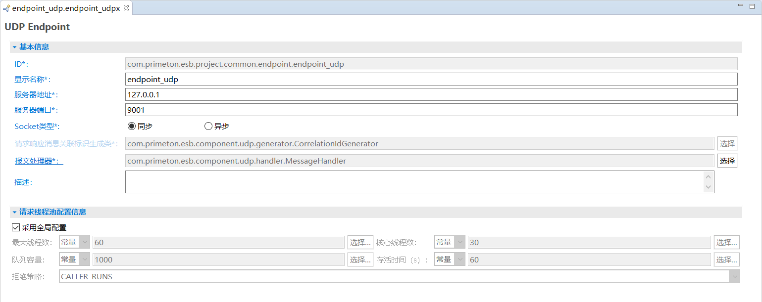 • 文件名:用于存储UDP Endpoint配置的文件名。需要保证在ESB工程中唯一。