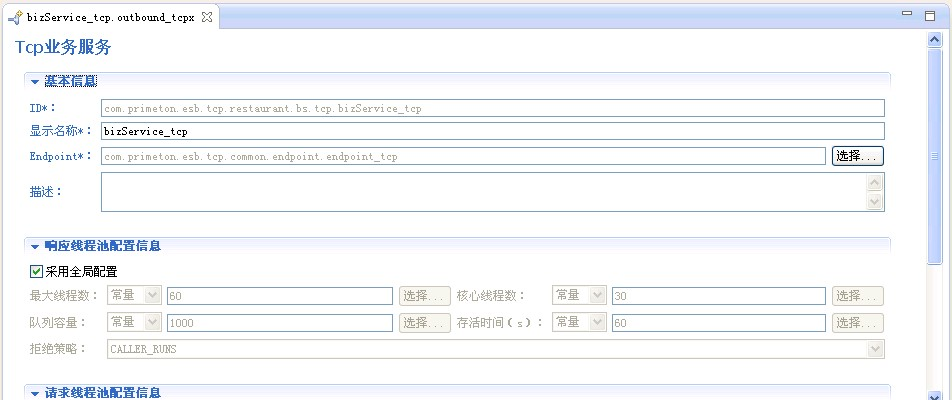 线程池配置信息参考:线程池配置信息 3.2 选择对应的Endpoint,点击Endpoint后面的"选择"按钮弹出"Tcp Endpoint"窗口,选择对应Endpoint,点击"确定"按钮完成选择。