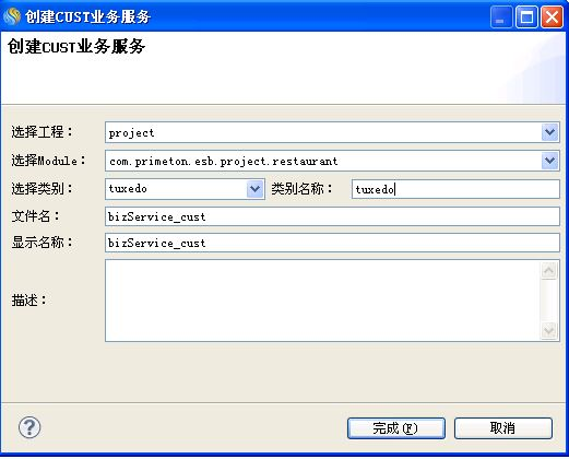 2. 在"创建CUST业务服务"向导中,输入相应的信息,点击"完成"按钮,完成CUST业务服务的创建,如下图所示: