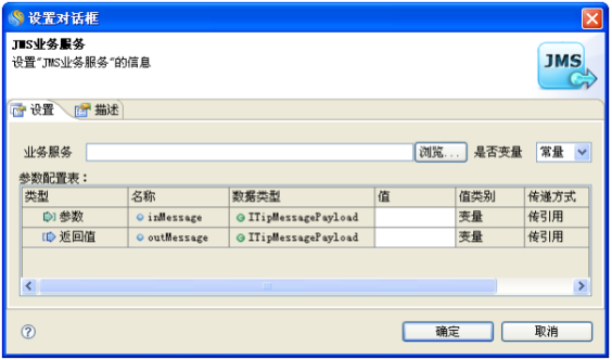 双击JMS业务图元弹出"设置对话框"窗口,如下图所示: