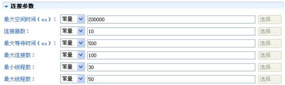 • 最大空闲时间: 连接的最大空闲时间。当连接超过该设定值时,将被强行回收。如果连接在该设定时间内,没有完成操作,也被强行回收。