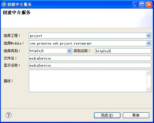2. 在"创建EJB业务服务"向导中,输入相应的信息,点击"完成"按钮,完成EJB业务服务的创建,如下图所示。