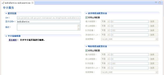 在HTTP代理服务的编辑界面中,需要输入"Url"并设置引用的中介服务,如下图所示。