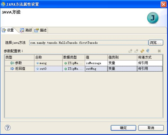 在"JAVA方法属性设置"中设置"参数配置表",如下图所示。