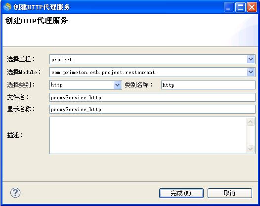 在"创建HTTP代理服务"向导中,输入相应的信息,点击"完成"按钮,如下图所示。