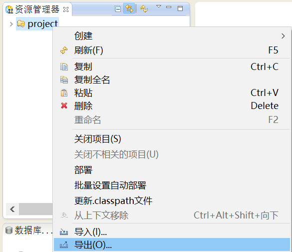 在资源管理器中,选中创建好的项目,鼠标右键单击“导出”,如下图所示。