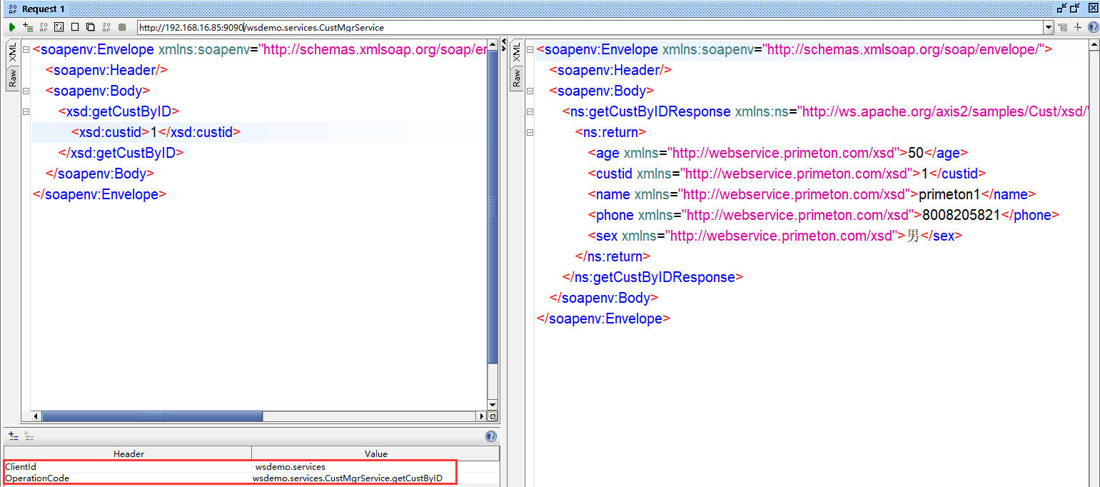 通过SOAPUI发送SOAP请求,如下图所示。