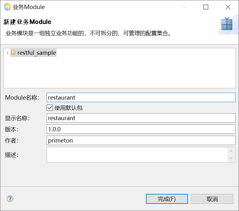 3. 单击“完成”,业务Module创建完成,如下图所示。