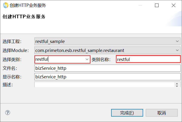 5. 在打开的“创建HTTP业务服务”对话框中,输入类别信息,如下图所示。