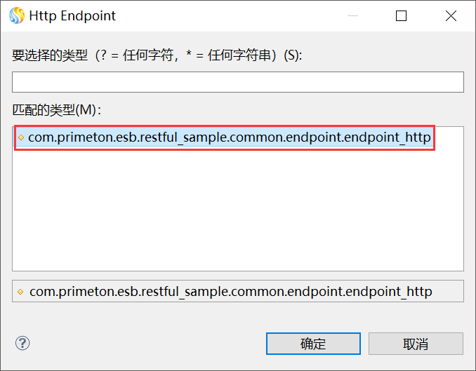 7. 在“HTTP业务服务”的编辑界面,单击“Endpoint*”后面的“选择...”,弹出“Http Endpoint”对话框,选择之前创建的HTTP Endpoint,单击“确定”。如下图所示。