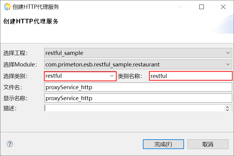 2. 在打开的“创建HTTP代理服务”对话框中,输入类别信息,如下图所示。