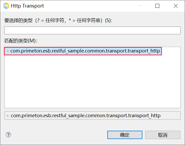 4. 在“HTTP代理服务”的编辑界面,单击“Transport”后面的“选择...”,弹出“Http Transport”对话框,选择之前创建的HTTP Transport,单击“确定”。如下图所示。