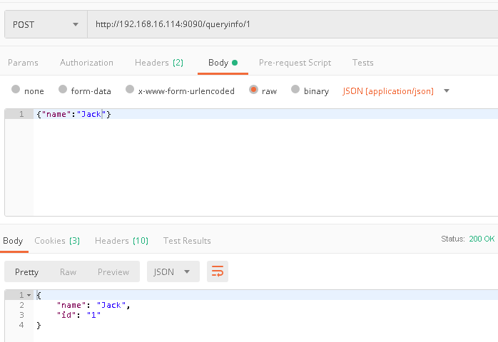 5. 启动Postman,访问APIGateway提供的Restful服务,例如:http://192.168.16.114:9090/queryinfo/1,如下图所示。