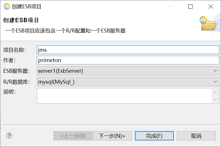 在工程创建向导中,填写工程的基本信息,如工程名称等,这里我们创建一个名为"jms"的工程,如下图所示。