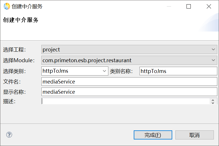 单击“完成”,生成中介服务,如下图所示。