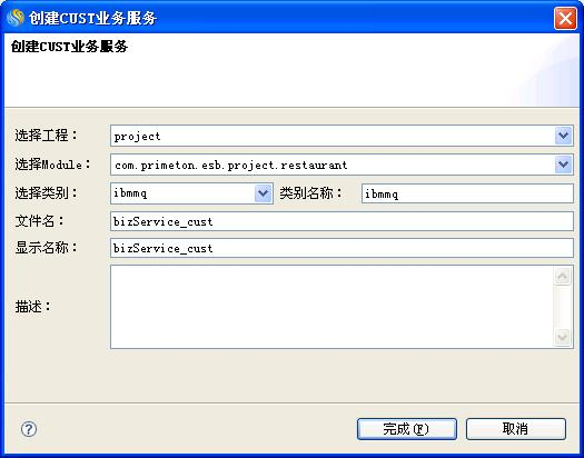 在"创建CUST业务服务"向导中,输入相应的信息,点击【完成】按钮,完成CUST业务服务的创建,如下图所示。