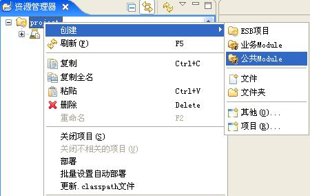 在资源管理器中,选中project,点击右键,选择"创建->业务Module"菜单项,创建业务Module,如下图所示。