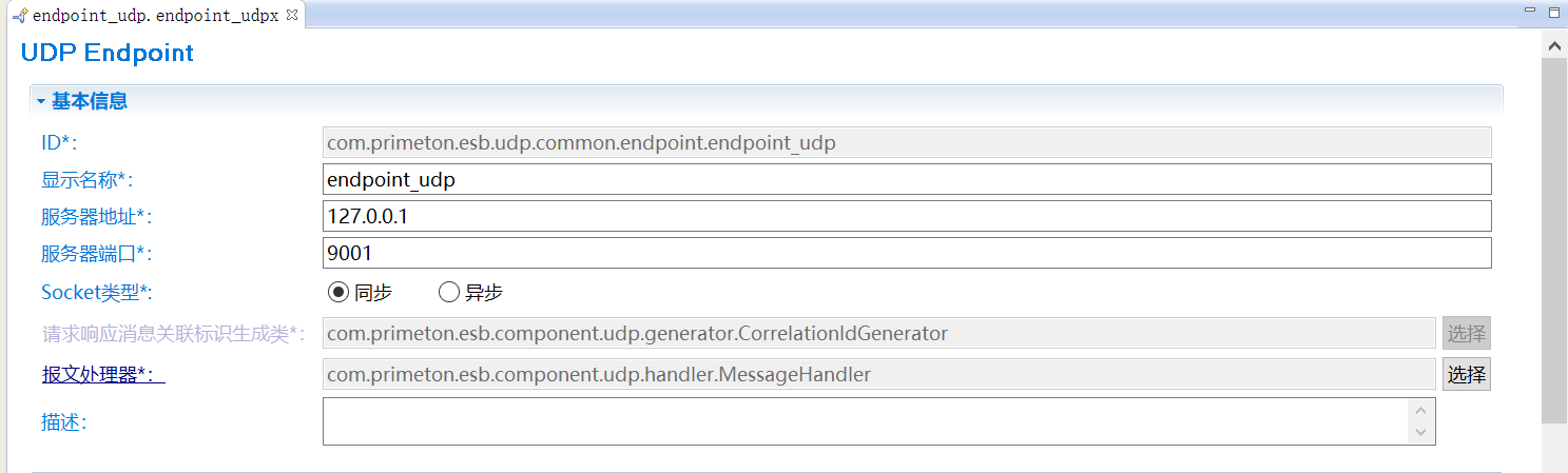 在资源管理器中,双击创建的UDP Endpoint,打开UDP Endpoint编辑器,修改相关参数。如下所示。