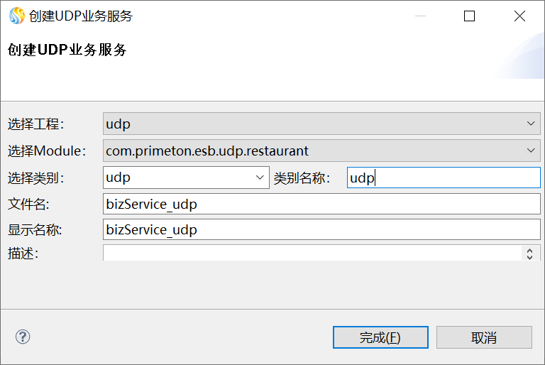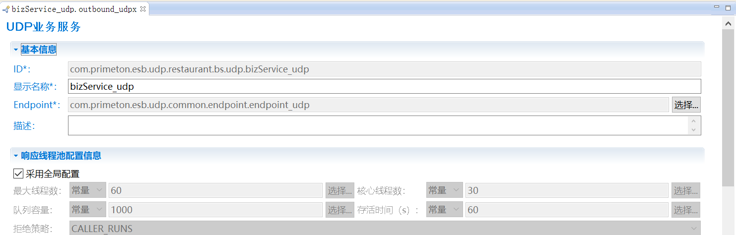 单击“完成”,在打开的“UDP业务服务”的编辑界面中,设置显示名称、Endpoint,如下图所示。