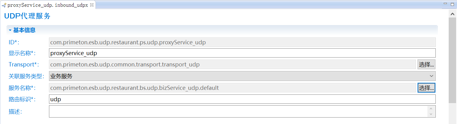 单击“完成”,在UDP代理服务的编辑界面中,设置UDP代理服务的配置,如下图所示。