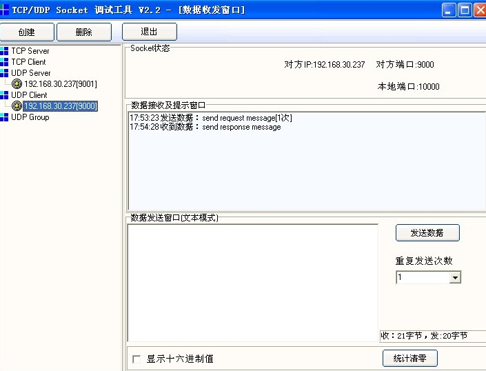 3.在UDP Server窗口发送响应,UDP Client窗口会接收到相应信息,如下图所示。