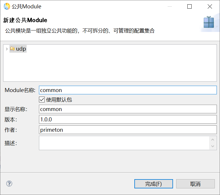 在“公共Module”对话框中,填写Module名称等信息,如下图所示。