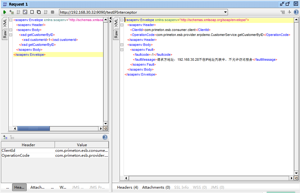 String faultstring = "请求方地址:" + clientIp + "不在IP地址列表中,不允许访问服务";
