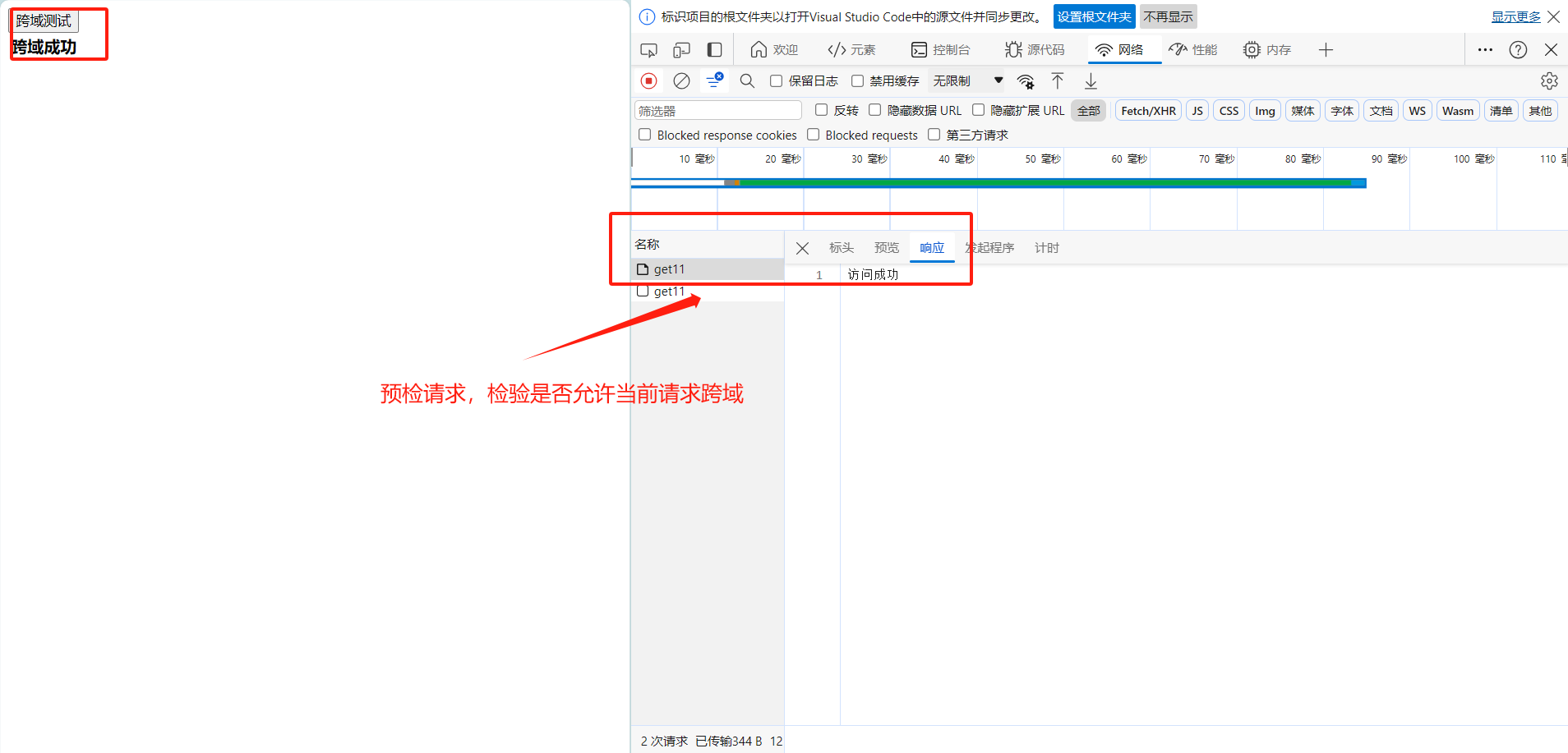 参数 说明 来源 必填,即请求发起方,可填默认全部,或IP+端口,IP+,如:合同谈判http://localhost:、http://192.168. 路径 必填,即请求路径,可为/**或/api/**等 cookie 可选,是否允许请求携带cookie 请求方式 多选,即允许跨域的请求方式 请求头 可选,只允许携带相关请求头的请求跨域,可填*即不做约束 响应头 同请求头 预检有效期 可选,即预检请求有效期(一段时间内不再发送预检请求)默认为1.8s 使用效果
