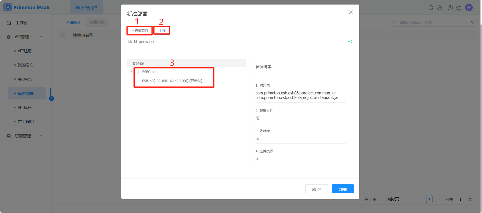 将导出的模型在“开发门户 > API管理 > 模型部署“页面进行导入。