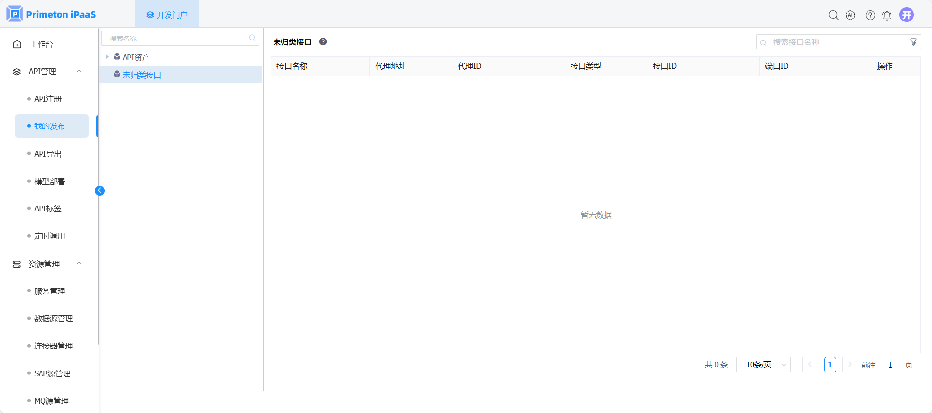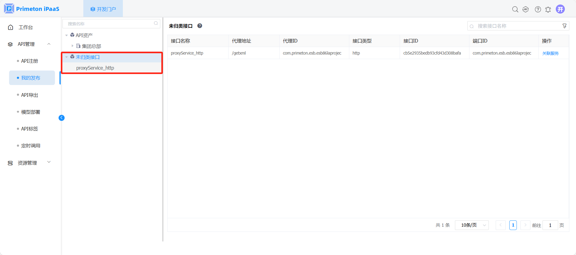 当接口从“模型部署“部署后,如果该接口是新增的接口,则出现在未归类接口中,如下图所示。