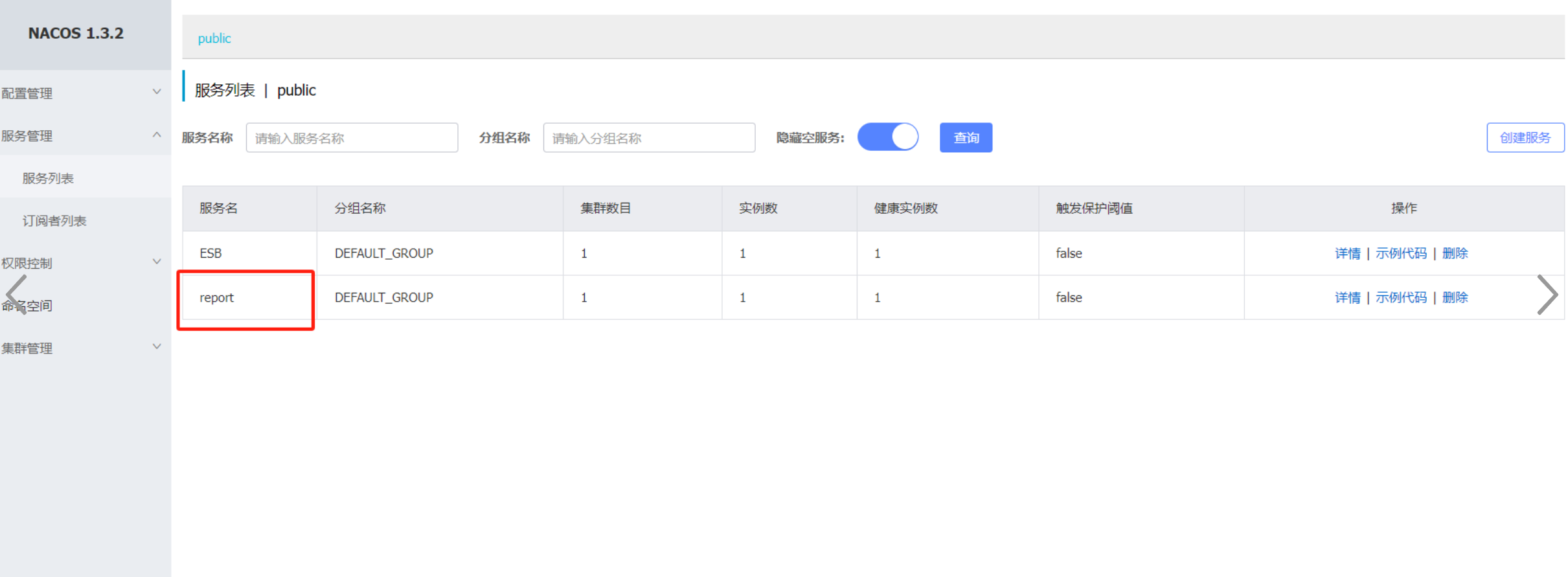 在服务列表“实例详情”列,点击服务编码,查看服务的实例详情。