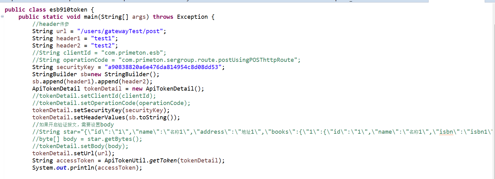 通过调用SDK:tokensdk.jar中的ApiTokenUtil.getToken方法,获取AccessToken。以下示例为获取AccessToken的代码示例,可供参考。
