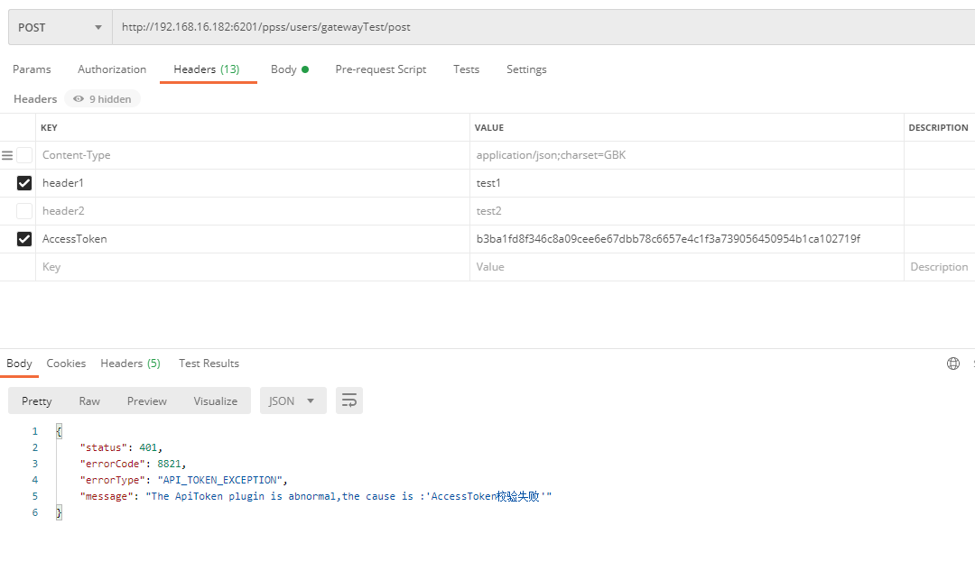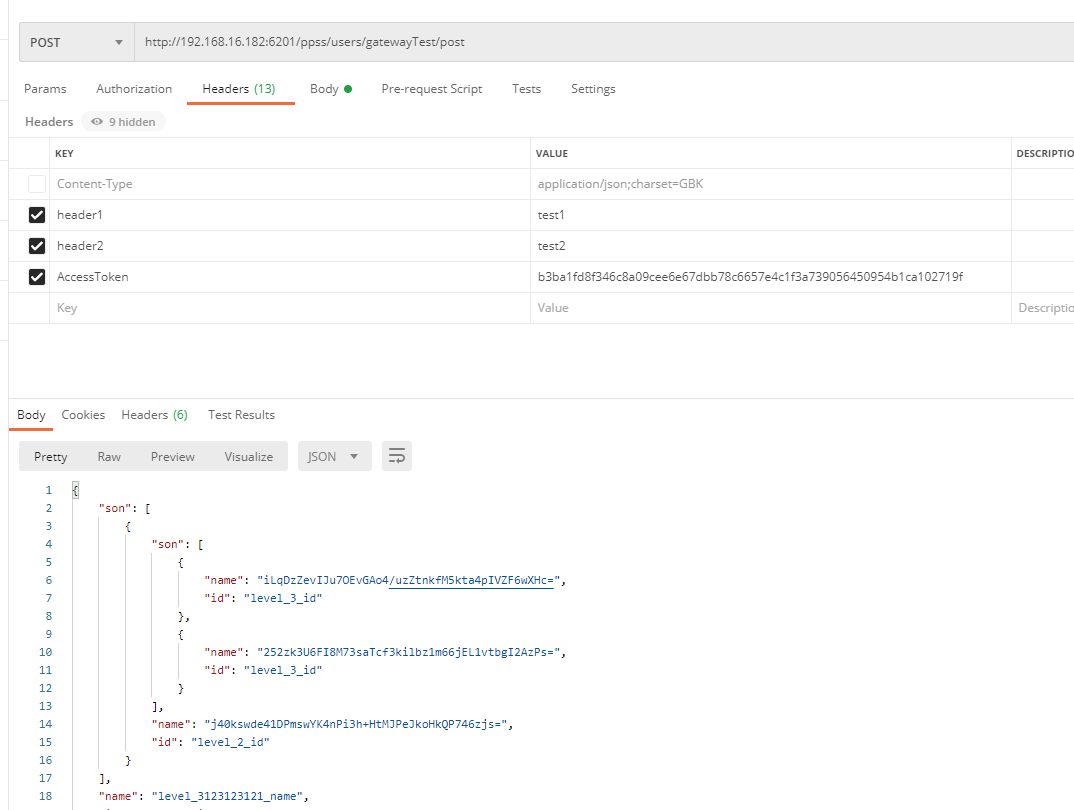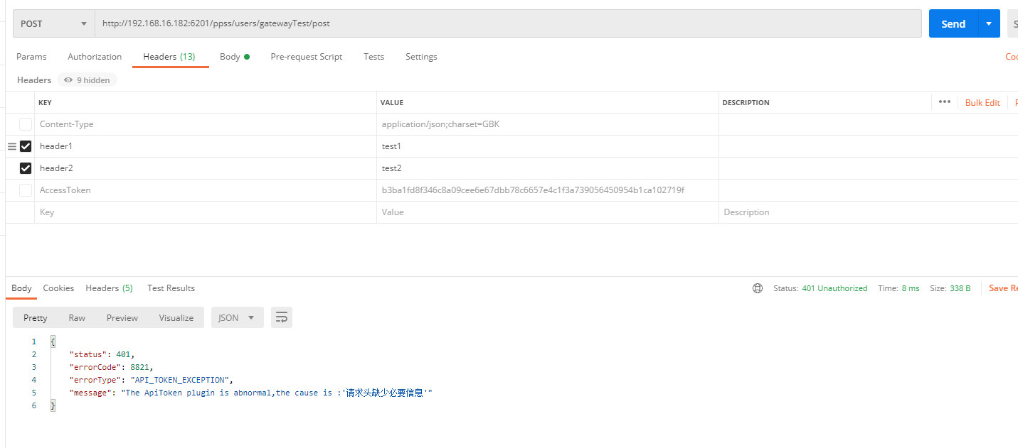 访问设置令牌的接口时,请求头中需要携带“header1”、“header2”、“AccessToken”。