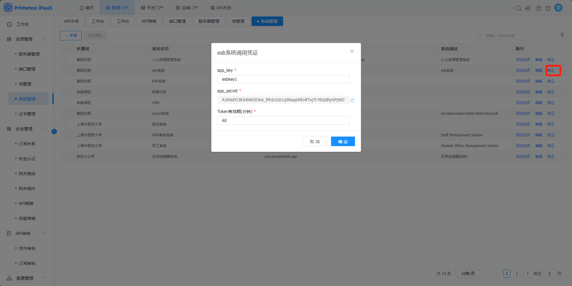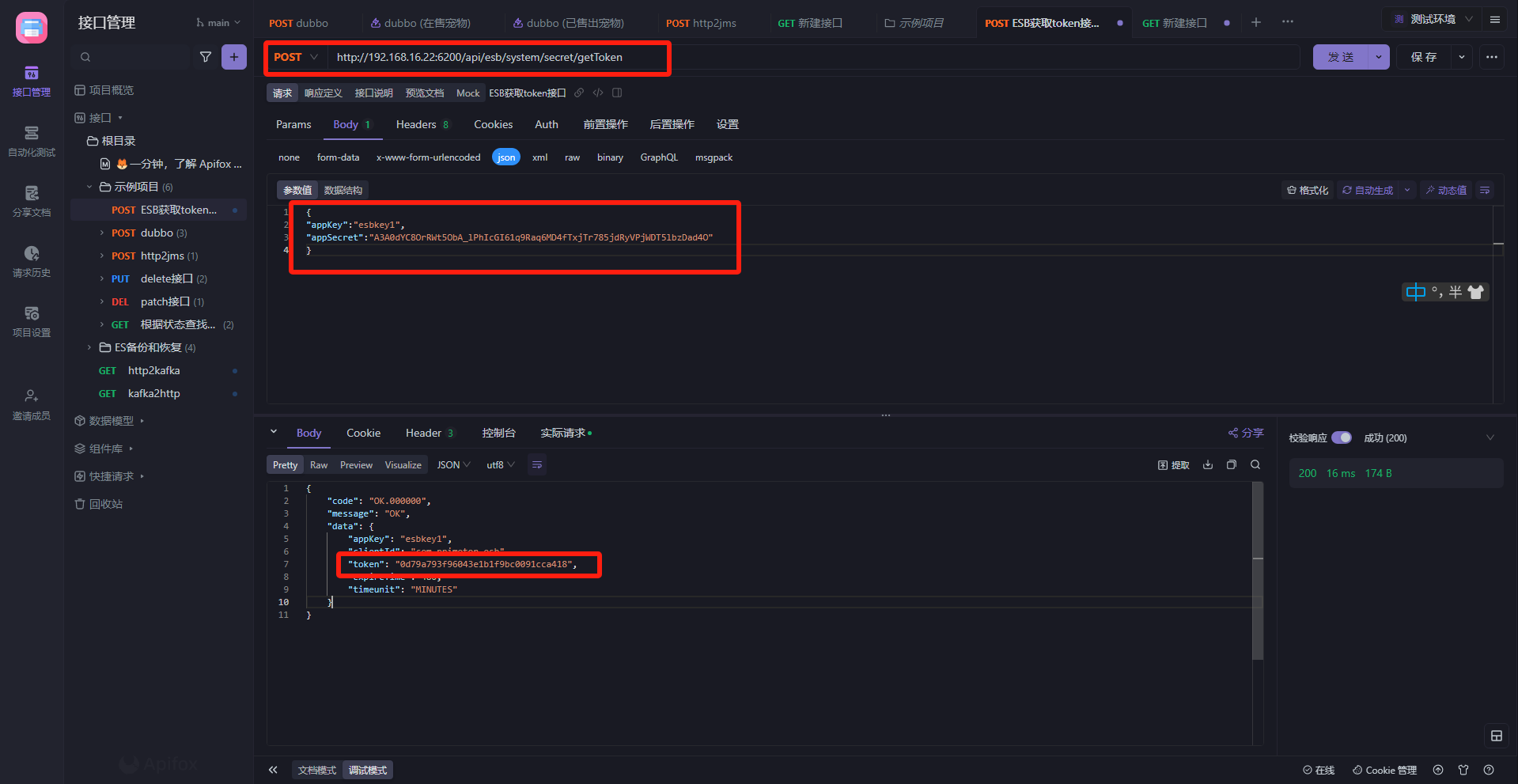 根据消费方系统的凭证,调用ESB Server提供的获取系统的token接口http://ESBServer ip:6200/api/esb/system/secret/getToken(或者http://API-Gateway-ip:6201/api/esb/system/secret/getToken),获取token。