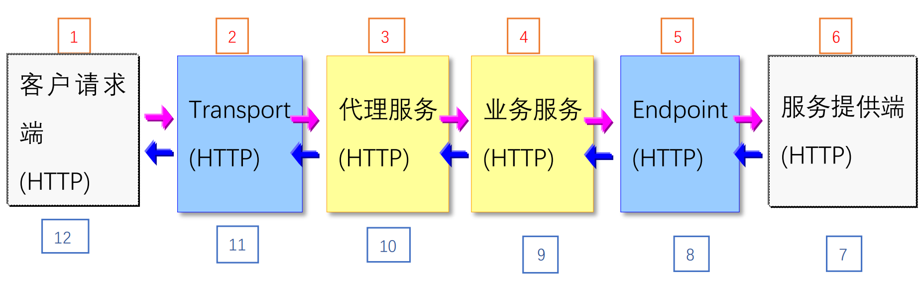 将一个显示信息的Servlet注册成一个业务服务,并暴露成代理服务,供客户端调用。 接口调用链流程图如下: